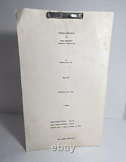 CONDITION: Cover wear in the form stains, yellowing, discoloration. Rust on the metal bind. Page crimps or corner crimps/creases. [1981 The Watcher in the Woods]. Supernatural horror film starring Bette Davis, Carroll Baker, Lynn-Holly Johnson, Kyle Richards, and David McCallum. Based on the 1976 novel by Florence Engel Randall, the film tells the story of a teenage girl and her little sister who become encompassed in a supernatural mystery regarding a missing girl in the woods surrounding their new home in the English countryside. PAGES: 71, DATE: July 1981, PRODUCTION NUMBER: 3874, PRODUCED BY: Walt Disney, DIRECTED BY: John Hough & Vincent McEveety, RUNTIME: 1hr, 23mins, 16secs, COPYRIGHTED: Walt Disney Productions.CONDITION: Title page wear in the form of foxing, discoloration, cover has circular rust stains as well as light blue staining, corner and edge wear, small crimps and creases. Slight foxing to internal pages as well as discoloration apparent on pages, corner and edge wear and slight crimps or creases here and there.
